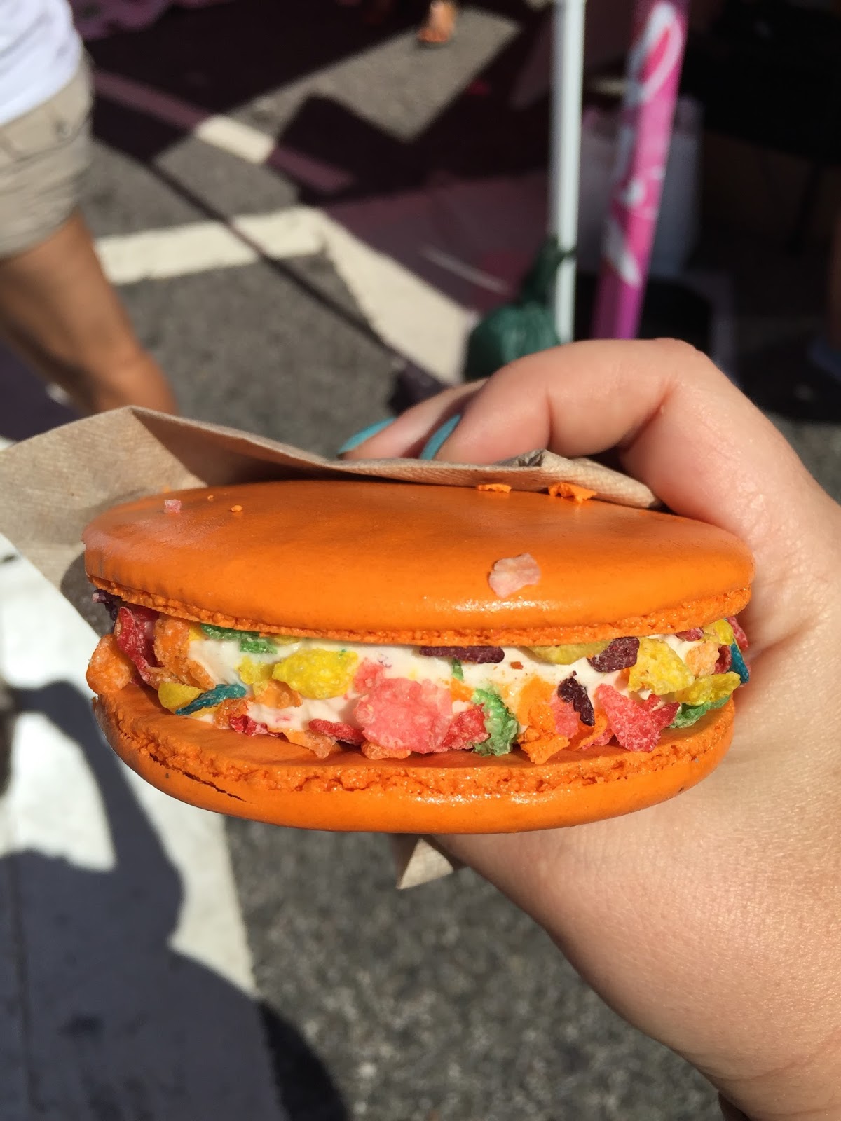 A Mac Daddy; 2 macarons filled with ice cream and rolled in fruity pebbles from MilkSugarLove: