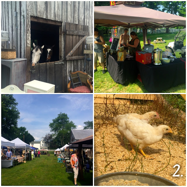 2. The previous weekend was a scorcher, but I went just a few miles away to Bryantown to the lovely Boondoggie Farm to the Vintage Flea and Farm Market. I was so excited to find something like this around here, especially on a cute little secluded farm. They had flea market type stuff as well as many locally made handiworks and food. Having horses, chicken, goats, cats and dogs didn't hurt my feelings either.